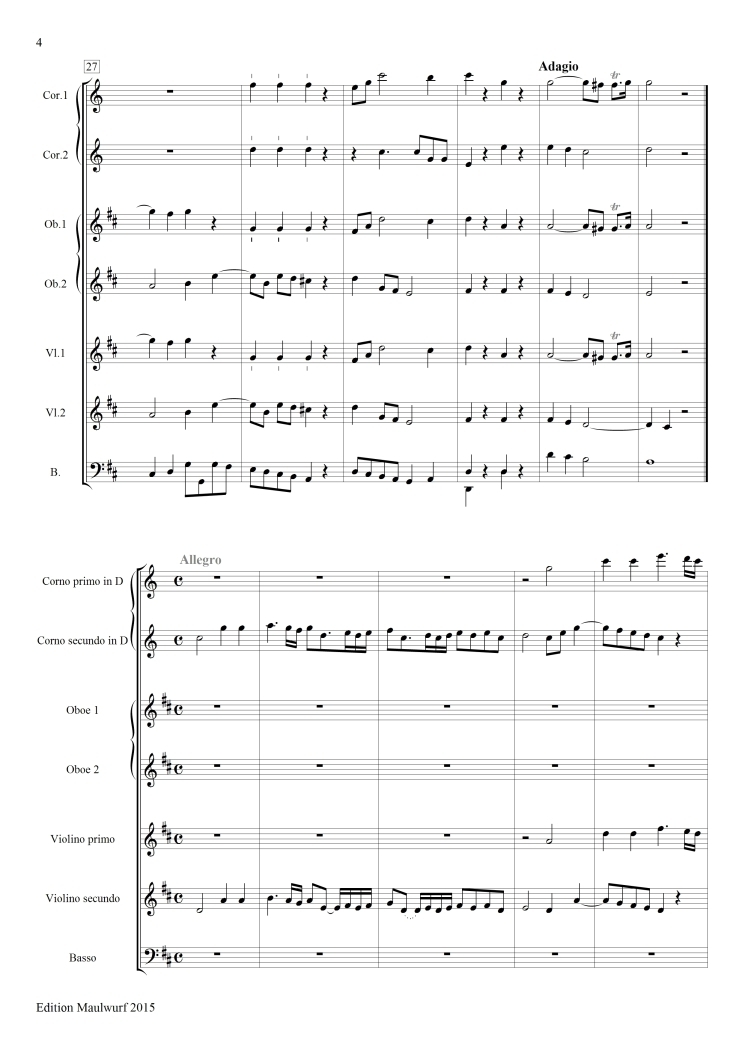 2 Corni, 2 Hautbois, Violino 1, Violino 2, Basso