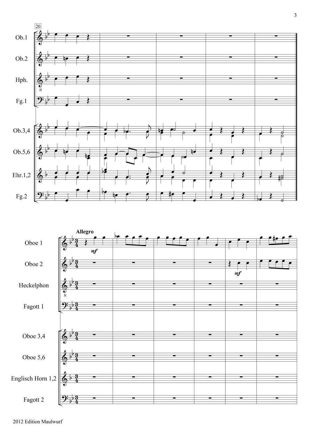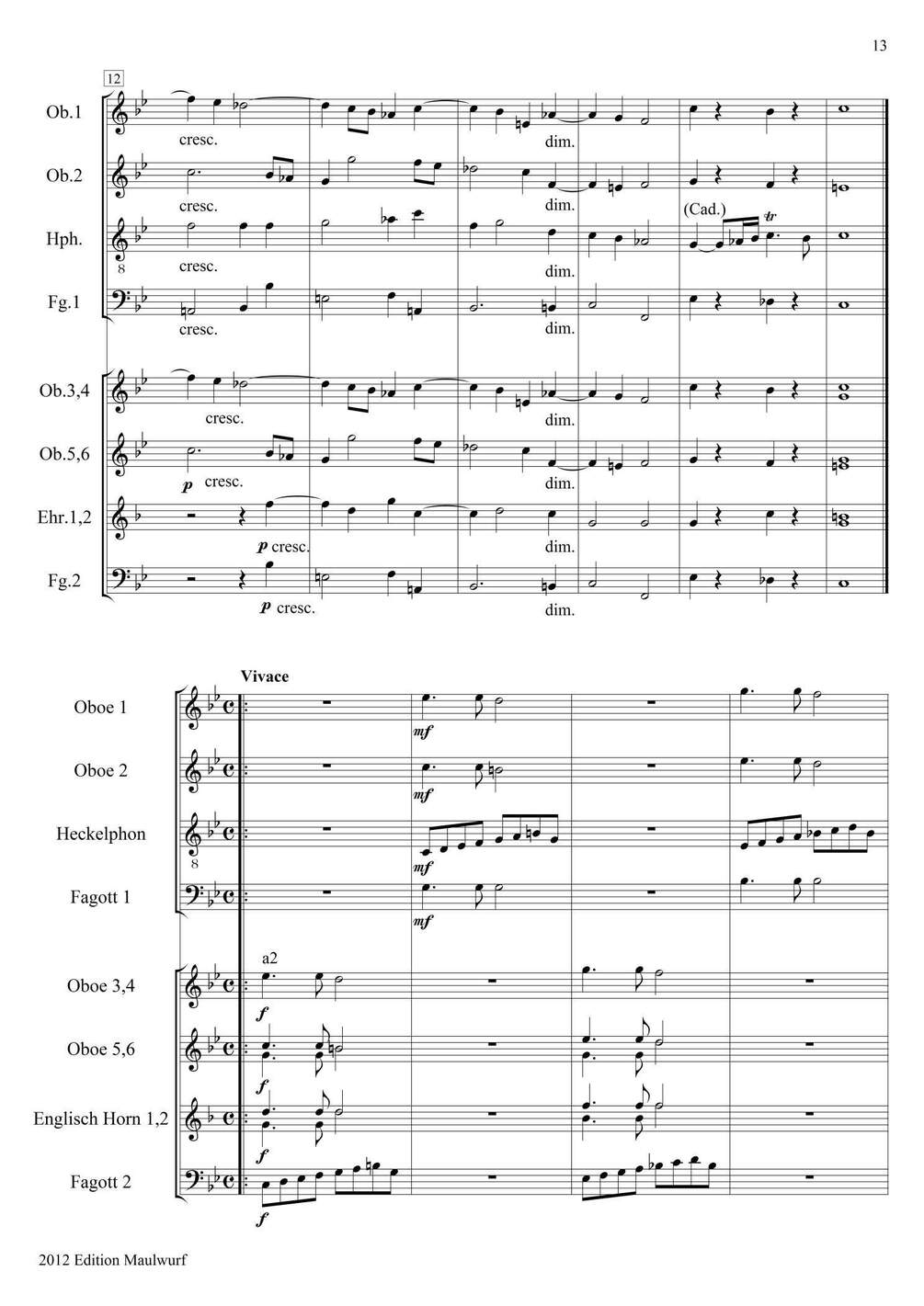 Arrangement for oboe ensemble (6 Ob., 2 Cor A., Heckelph., 2 Bs.)