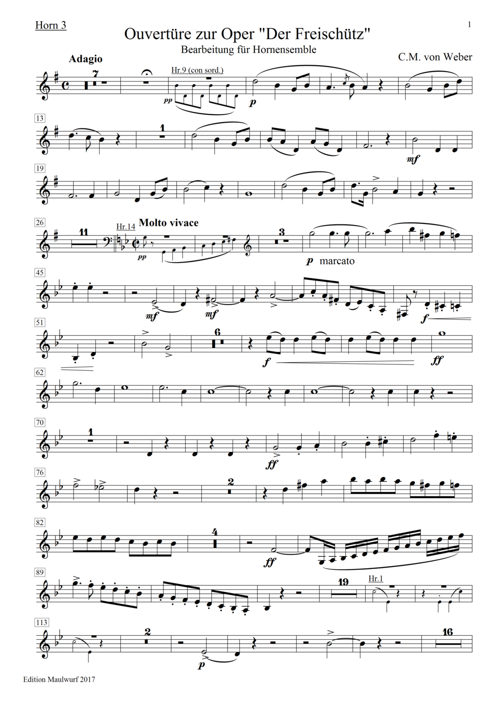 Freischutz Ouverture for horn ensemble
