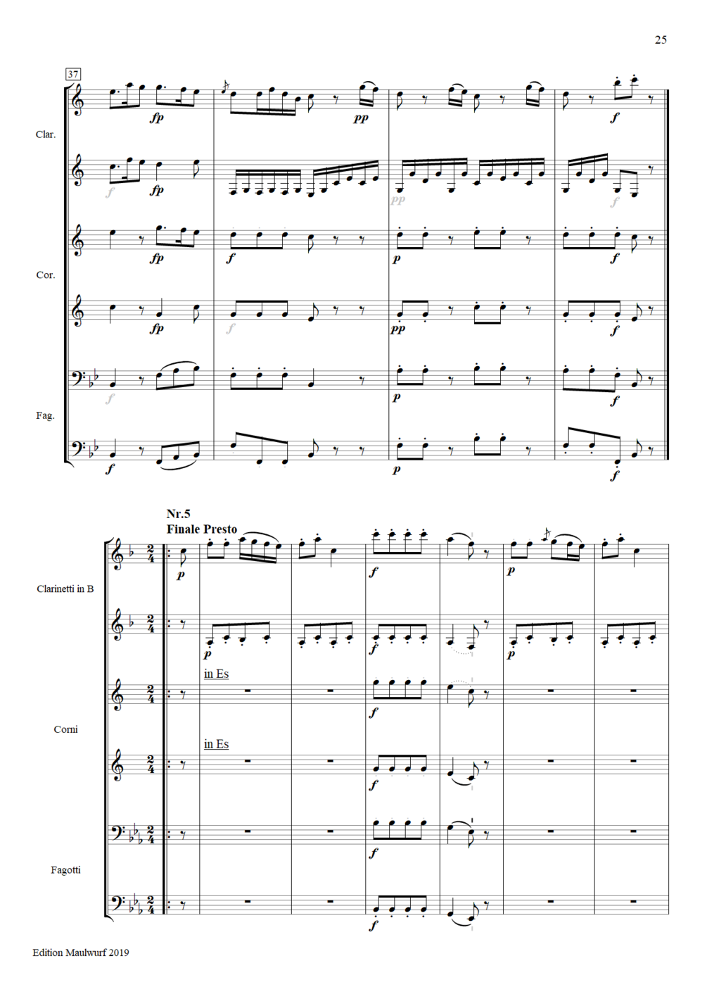 for 2 clarinets, 2 horns and 2 bassoons