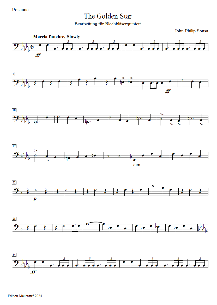 Instrumentation: 2 trumpets, horn, trombone, tuba