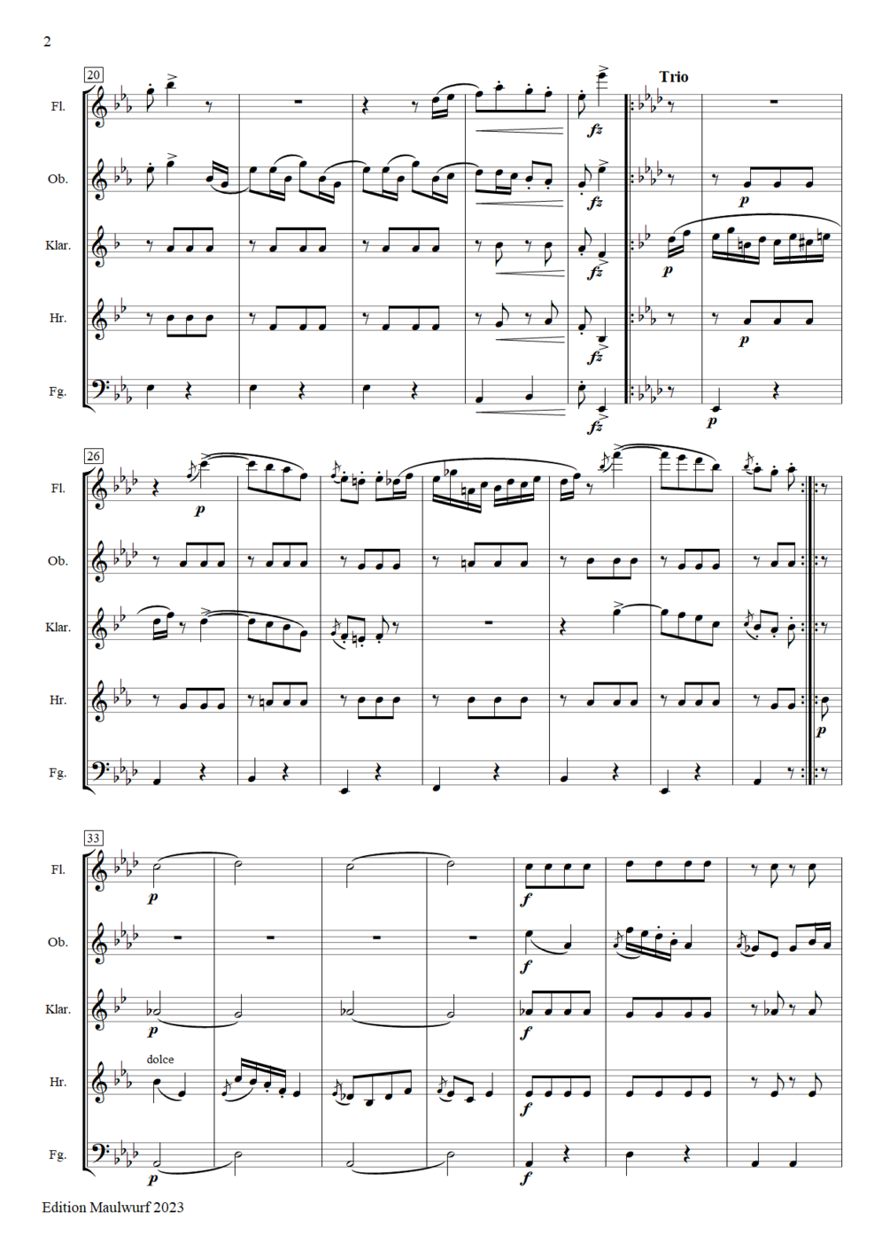 Instrumentation: flute, oboe, clarinet, horn, bassoon