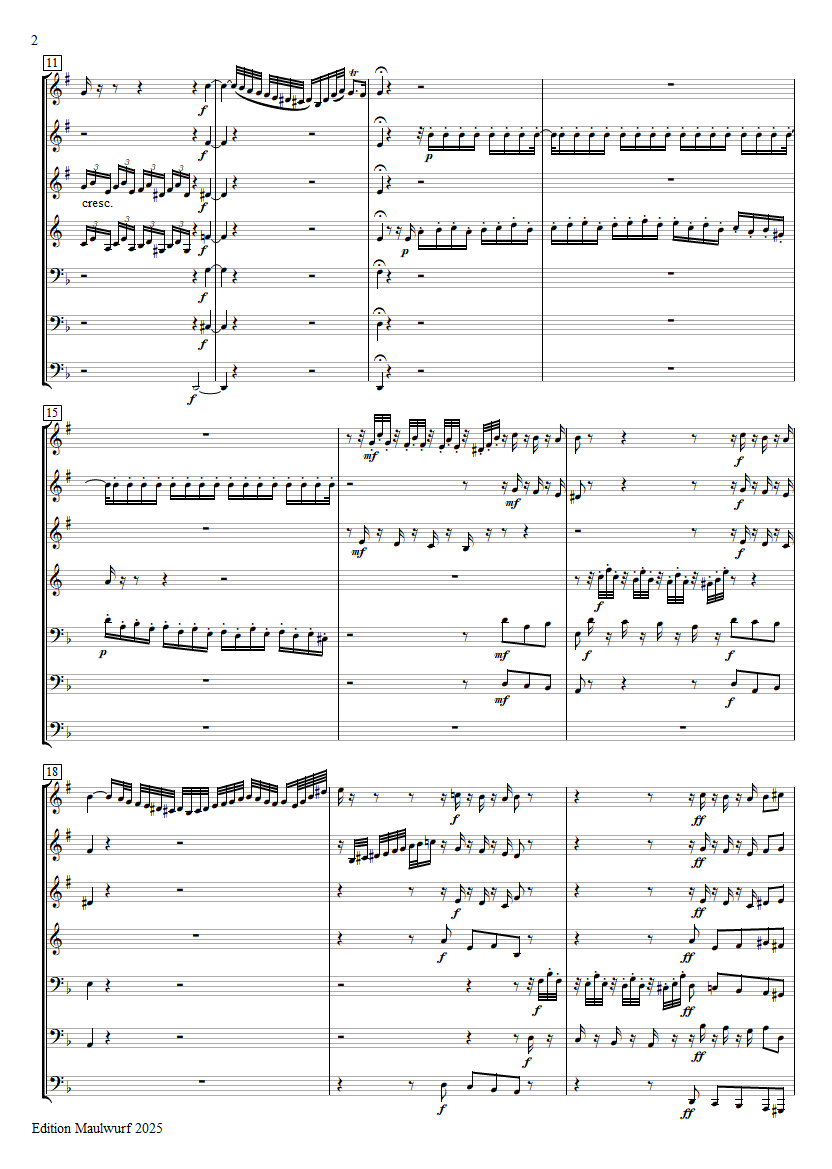 Instrumentation: 3 trumpets, horn, 2 trombones, tuba