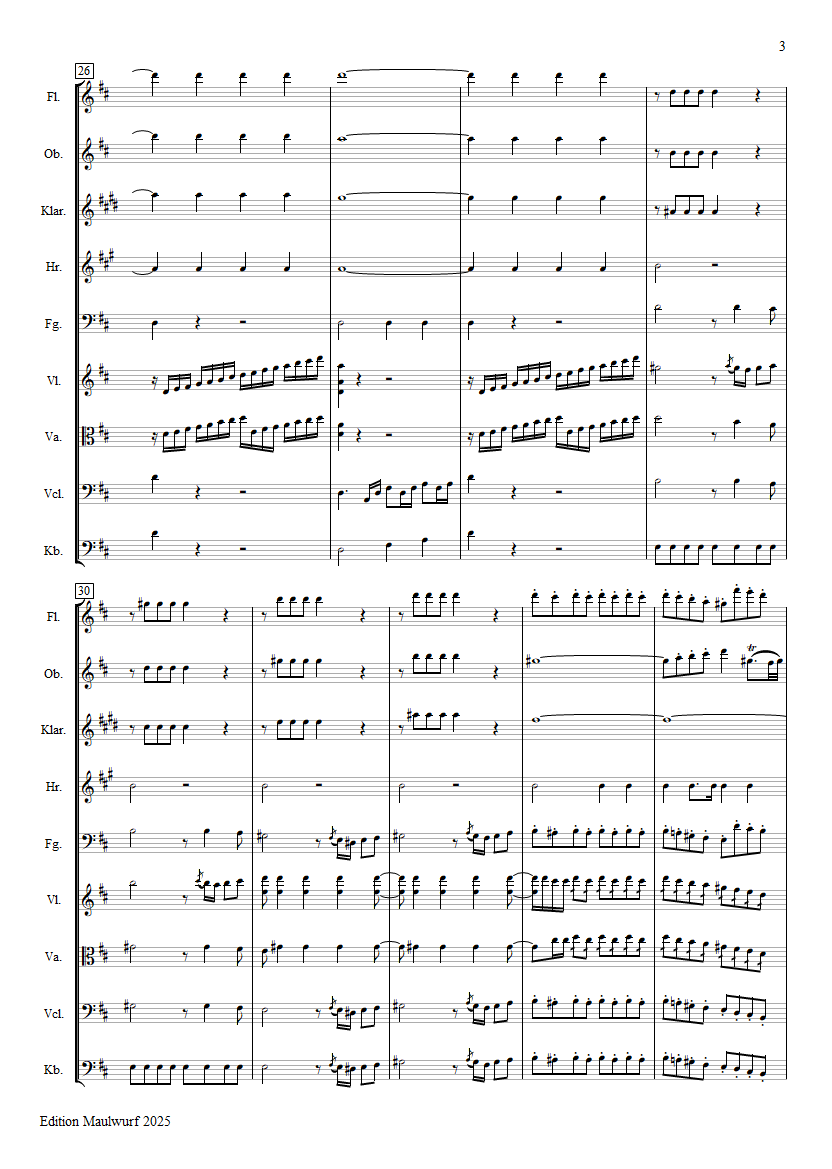 Instrumentation: flute, oboe, clarinet, horn, violin, viola, violoncello, double bass