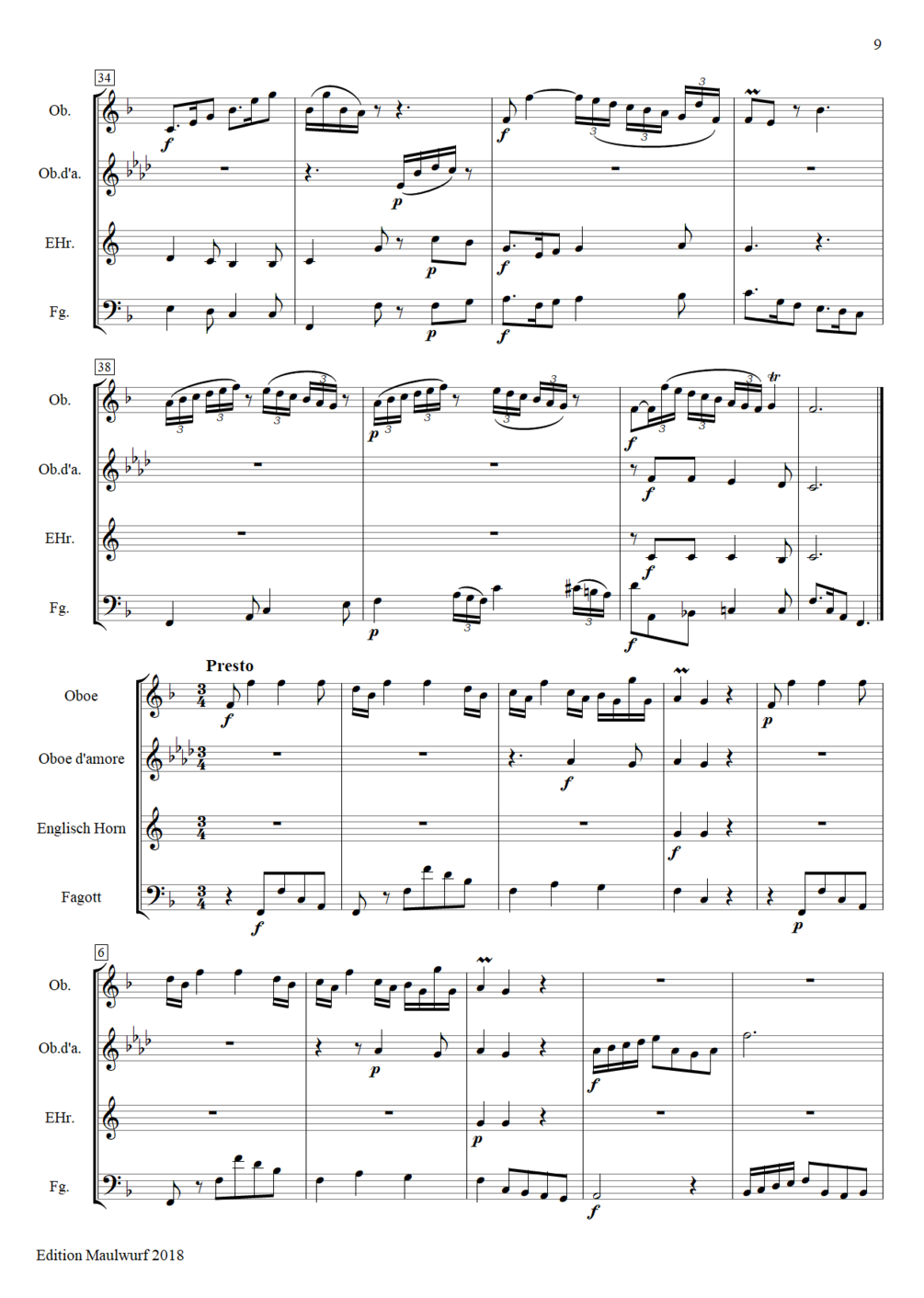 Instrumentation: oboe, oboe d'amore, cor anglais, bassoon
