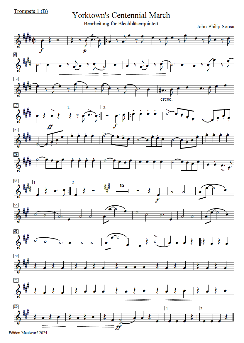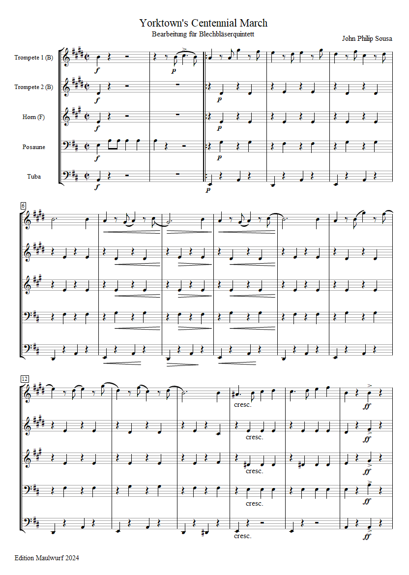 Instrumentation: 2 trumpets, horn, trombone, tuba