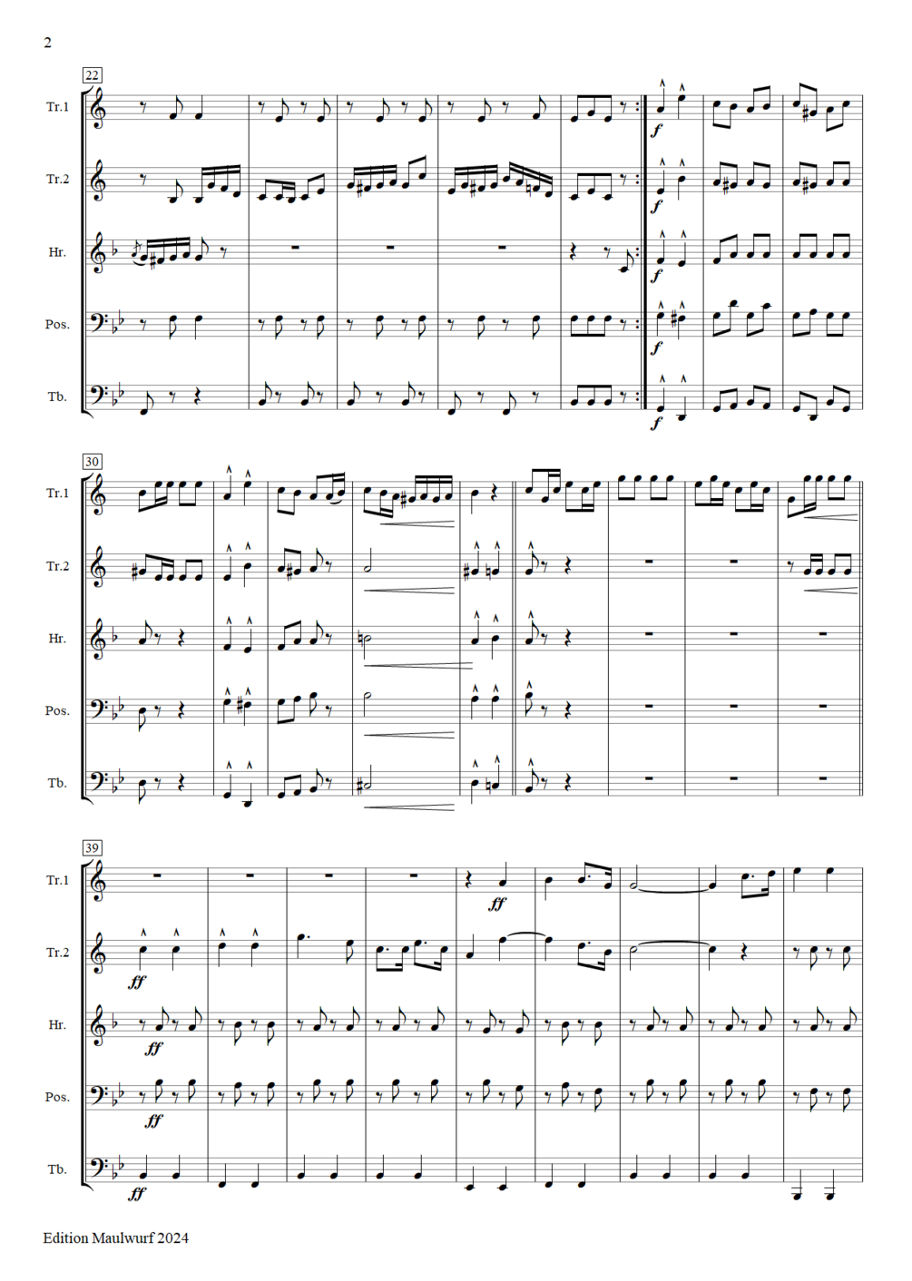 Instrumentation: 2 trumpets, horn, trombone, tuba
