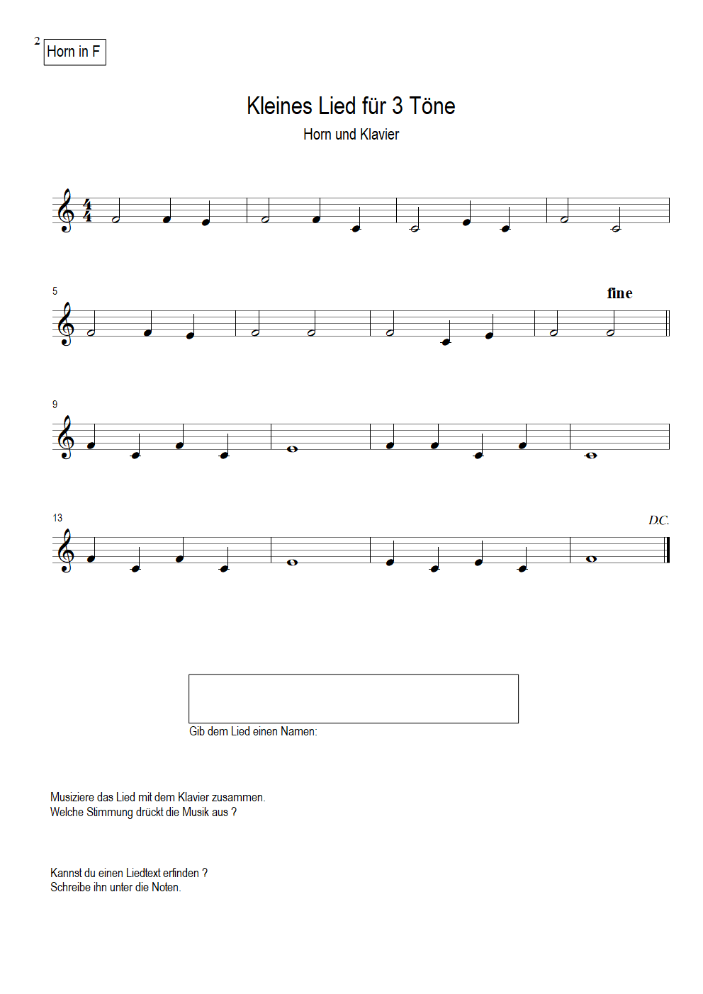 4 little tunes with 2 to 5 notes