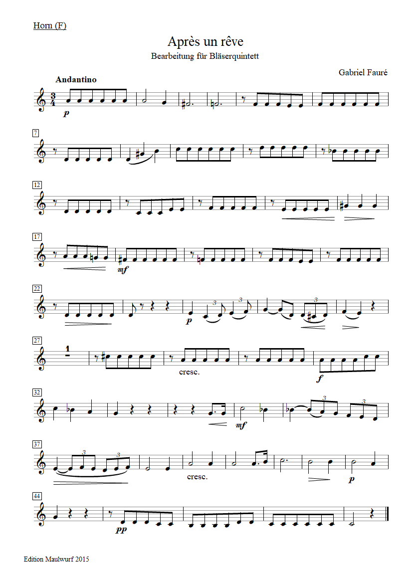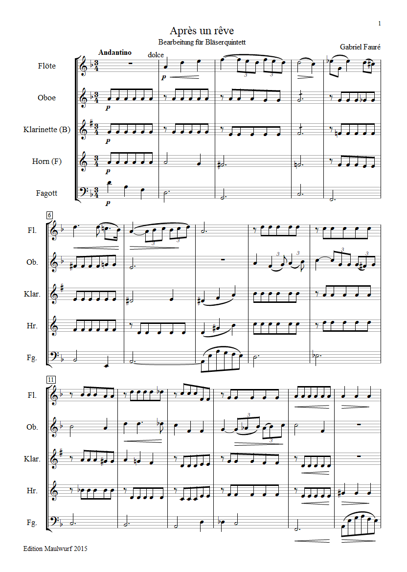 Après une Rêve (wind quintet)