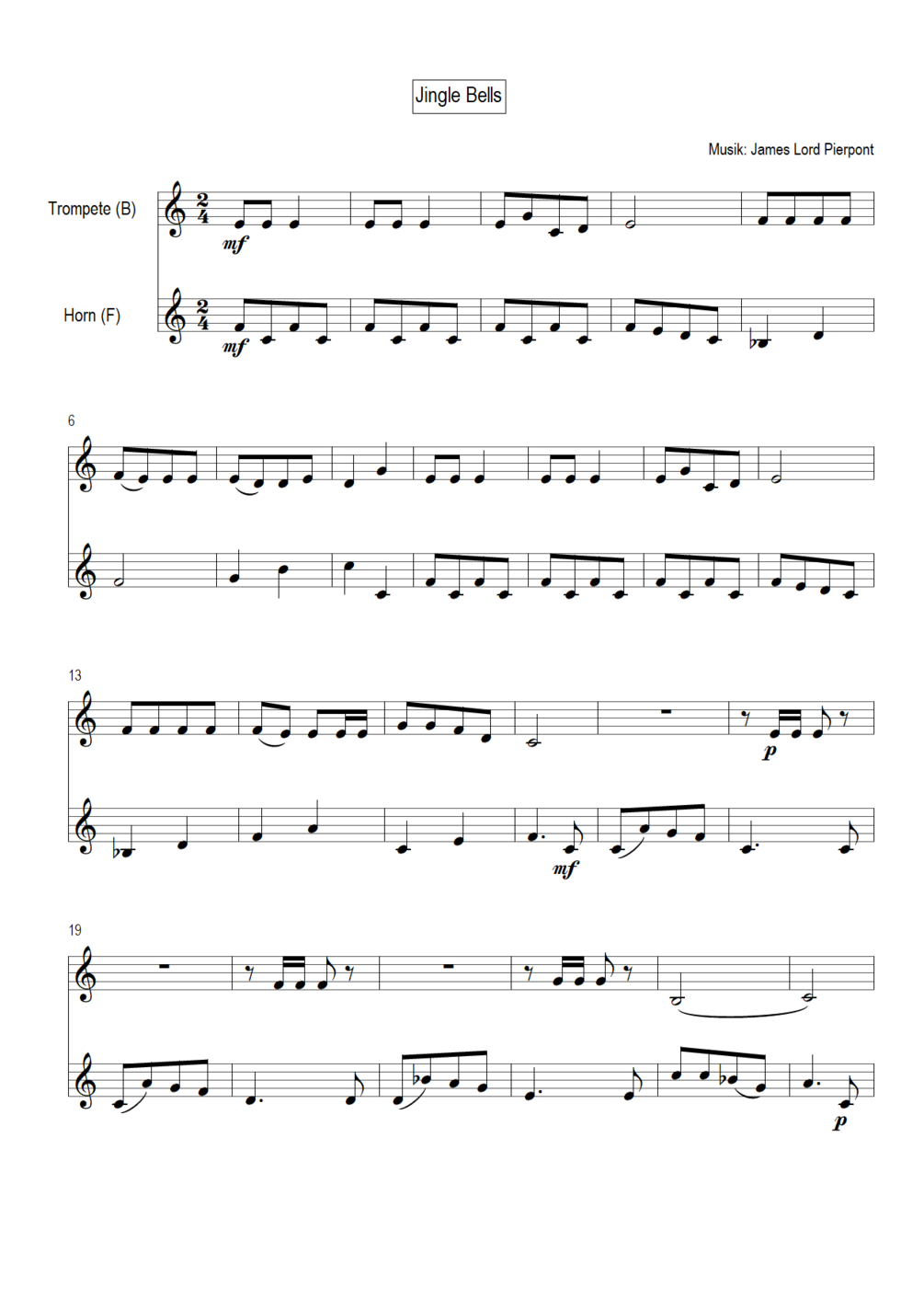 Instrumentation: trumpet in Bb, horn in F
