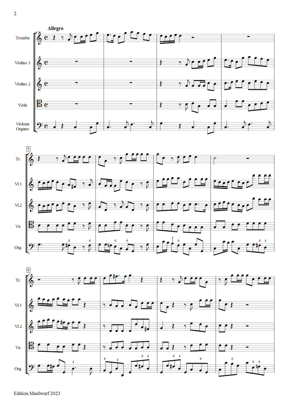 Instrumentation: trumpet, violin 1, violin 2, viola, violone, organ