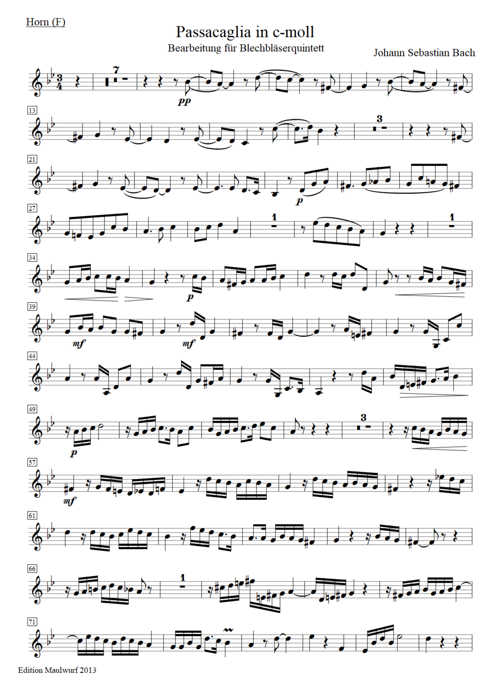 Instrumentation: 2 trumpets, horn, trombone, tuba