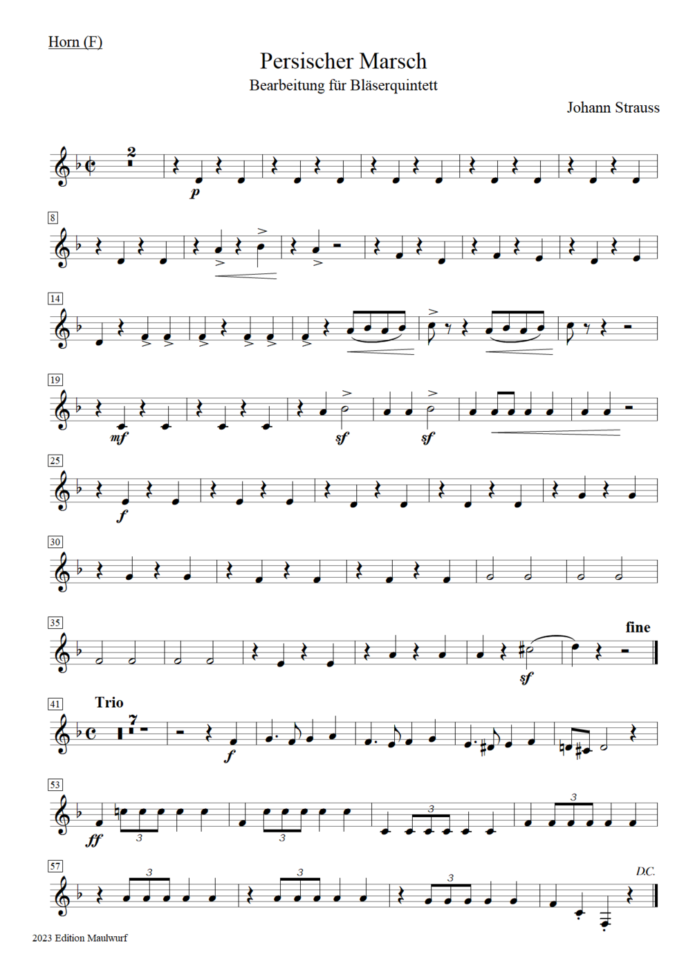 Instrumentation: flute, oboe, clarinet (Bb), horn (F), bassoon