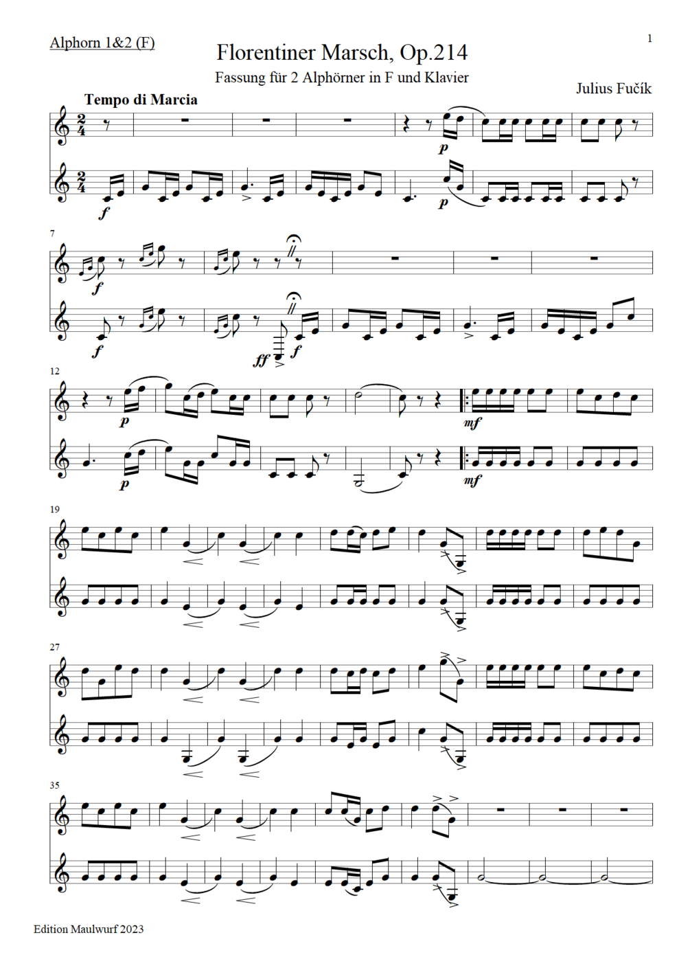 arrangement for 2 alphorns in F and piano